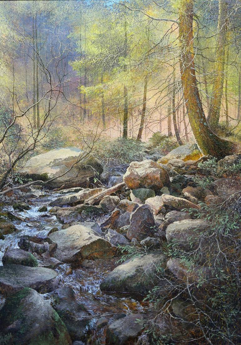 Quietly Running Water. A warm summer day in the mountains. Only birdsong and water noise can be heard. A real relaxation. Any artwork by Yurij Klapouh that is represented in the gallery is available for comissioning. Also, it is possible to order a comission of a custom portrait or copy of old mas...