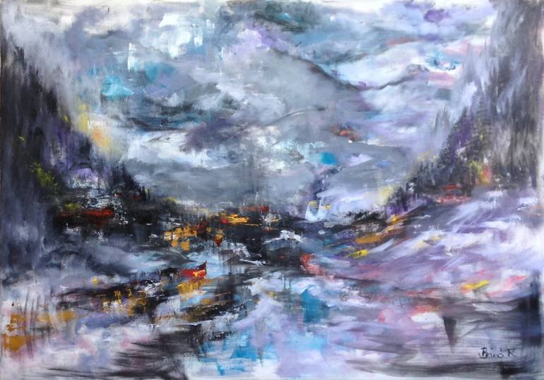 Oil on unstretched canvas Abstract landscape series Impressive atmospheric landscape shipped rolled in a heavy duty tube.