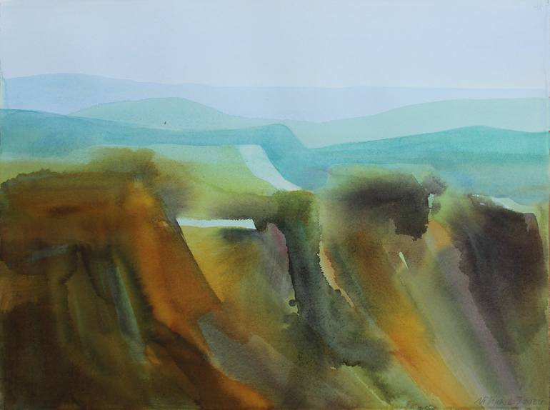 Closer to heaven far from everyday noise. Mountains are for me the longing for silence and solitude. The eternal transformation of forms in the movement of light gives the speed to my thoughts. Four watercolours with the same motif made on the same day.