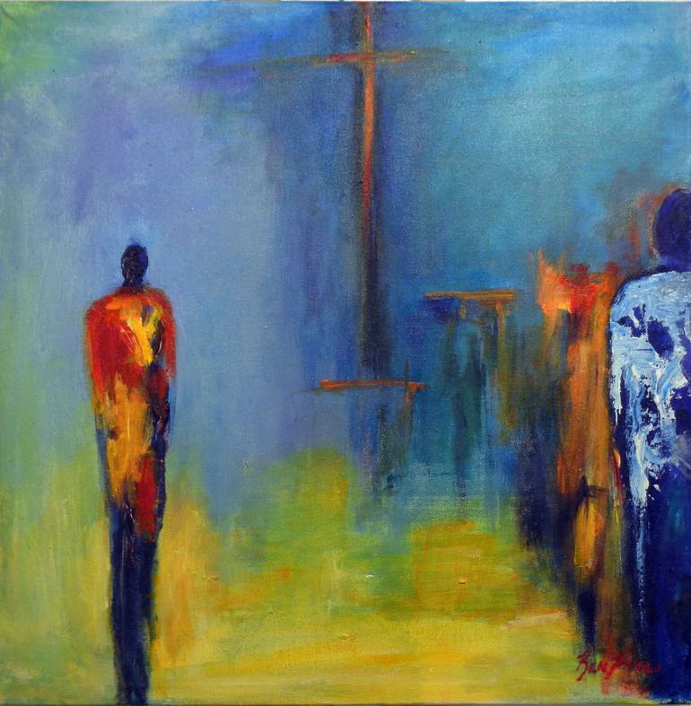 TITLE: Moving Forwards - i2402 SIZE: 20 x 20 inches MEDIUM: Acrylic / Oil SUPPORT: 1.5" Deep Gallery Wrapped Canvas, Sides Painted - Ready to Hang SERIES: The Interactions Series ARTIST SIGNED: Yes - Front and Back COPYRIGHT: Maintained with the Artist CERTIFICATE OF AUTHENTICITY: Yes - Signed by Ar...