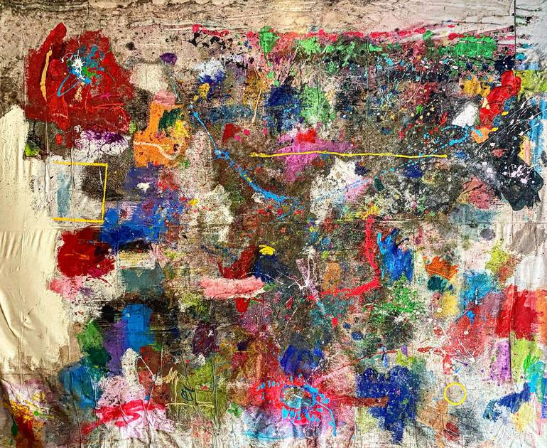 Eddie Love’s work resists easy explanation — a vivid collision of color, texture, and meaning balanced with recurring motifs & gestures in distinct styles that intriguingly demand engagement yet feign aloofness. His mixed-media pieces pulse with frenetic energy, blending abstraction with raw social commentary. Layers of bold strokes, unexpected materials, and cryptic text explore chaos, decay, and modern life; inviting viewers to decode their own truths - embodying what can be described as Socio-Pop art. The presented works are diverse in character, statement, and media. Whether on large unstretched canvases or smaller structured surfaces, Love’s prolific work is an unfiltered stream of consciousness—immediate, overwhelming, and undeniably compelling. For those willing to step into the storm, his art lingers long after you’ve looked away.