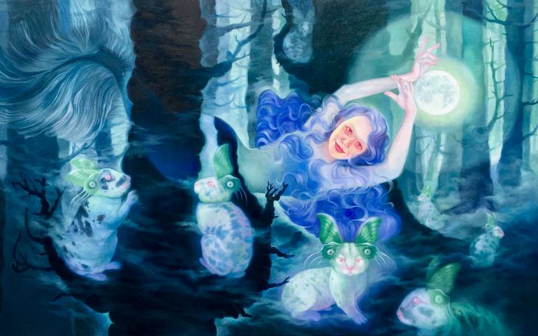 Moving along the moon 100 x 160 cm oil on canvas year of completion 2022