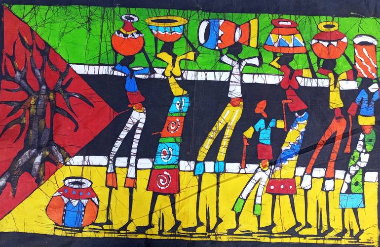 "MOZAMBIQUE FLAG" This figurative and semi- abstract painting represents the Republic of Mozambique flag. BATIK PAINTING Lively popular form of art,expressing daily scenes from the lives of Mozambicans (Africans) with breathtaking of colors and activities. These paintings are produced by brushing ...