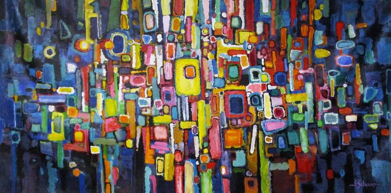 Many of my artwork relates to the classical music I love, Mozart, Bach, Beethoven etc. Creating abstract artworks relating to this also sublime abstract music is my passion. This painting is done in acrylics on a unstretched canvas and will be shipped in a tube.