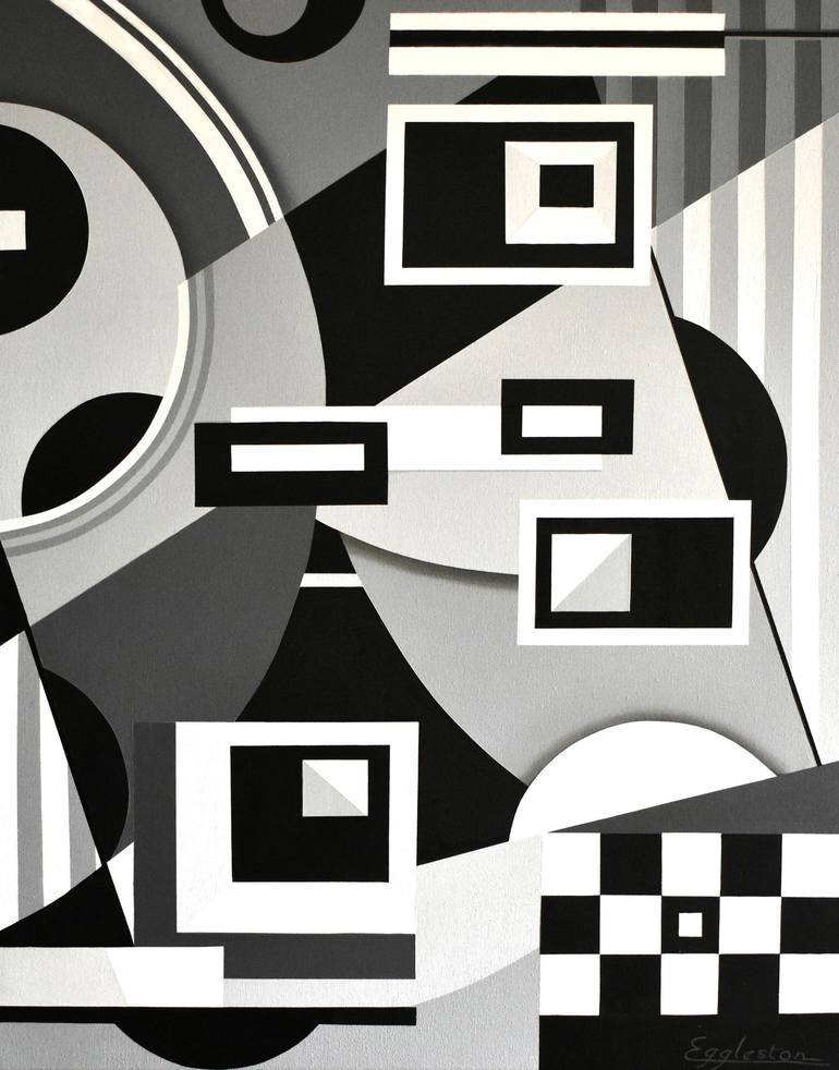 Cheryl Eggleston is a visual artist based in South Florida, USA. She is a Geometric Surrealist painter best known for her work in alkyd and for incorporating texture through hand-carved plates printed directly onto the canvas. Her practice emphasizes hard-edge compositions and a restrained color palette dominated by blues, browns, grays and yellows. Eggleston’s paintings often feature architectural forms—most notably yellow structures punctuated by black, empty windows—set within blue skies, mountains, and barren plains. Repeating geometric motifs, including textured, or thinly outlined squares, further reinforce a sense of rhythm, structure, and quiet tension throughout her work. Influenced by the early Surrealist paintings of Giorgio de Chirico that aimed to reveal a reality beyond the physical world, Eggleston’s recent work is increasingly informed by metaphysical inquiry. She explores the idea that thought—both conscious and subconscious—carries energy capable of connection and influence beyond the individual, infusing her compositions with a contemplative and psychological depth. Her work is held in private collections throughout the United States.