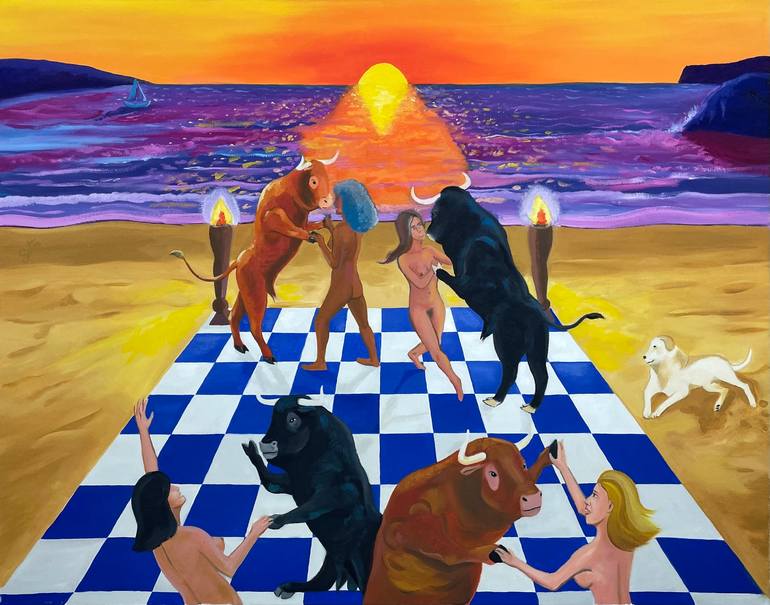 As a Spaniard, I've always seen bullfighting like something cruel and disgraceful. So I never assisted to this horrific spectacle. Bulls are magnificent creatures, strong and beautiful. That's why I imagined this kind of scene, where bulls are having fun and dancing with beautiful women who mean no ...