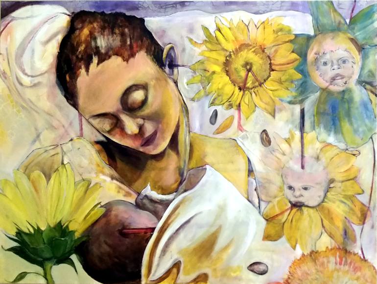 A compilation of a parts of a variety of photographs of my kids and I in our early years formed a "garden" with unusual connections, veins, tubes and seeds. Although most of this work was in letting the subconscious connections flow, I feel that the lines and color choices bring about a sense of sti...