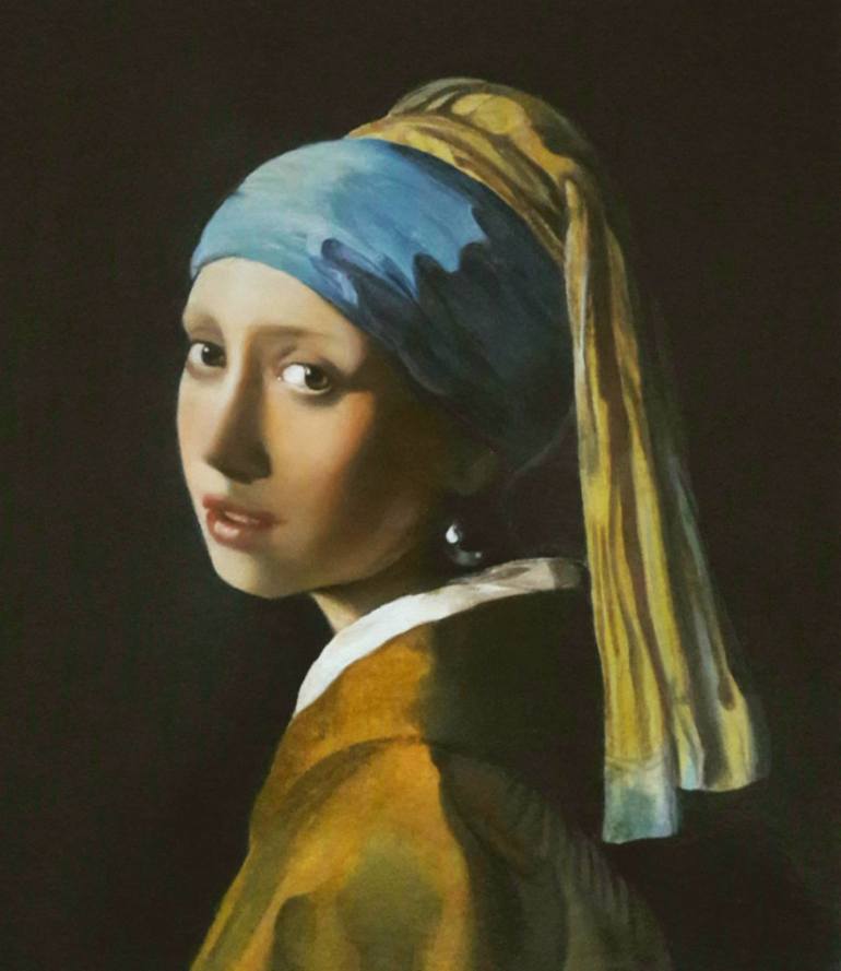The painting wad made as a tribute to Vermeer's masterpiece Girl with a Pearl Earring by J. Vermeer. I was hosted with it on TV on National broadcasting network RAI and was exhibited in Roma. It is now part of a private collection.