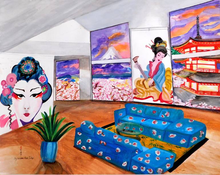 Inspired by Rock & Roll song "My Woman from Tokyo" by Deep Purple. I hope the viewers wilk feel and think "this is what the song would look like if it was painted!" There is no woman from Tokyo, but it is painting of her empty apartment in Tokyo. Does the painting have no imagination? But visualiz...