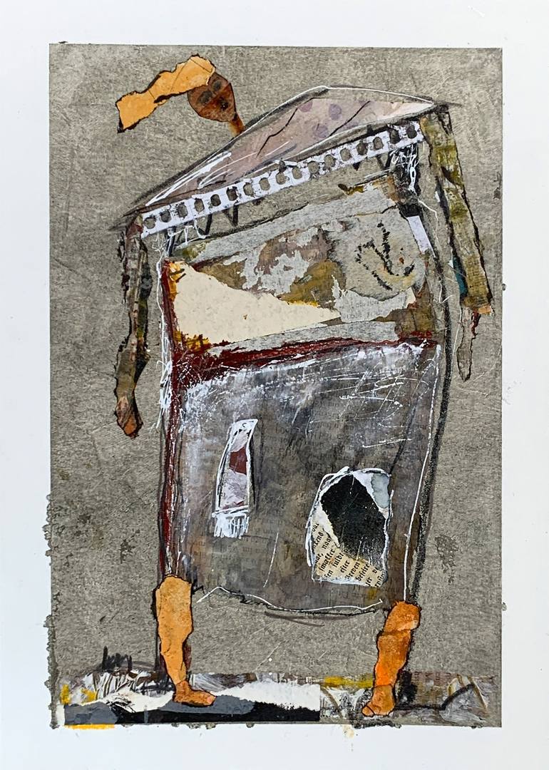 Collage and paintig on Paper, 300 g/ms². Dated and signed on the back. One of a kind artwork. Series: Stories from people Title: my new boots Size: 29,7 x 21 cm (Din A4) My paintings are created in the context of the free flow of thoughts and emotions. They are neither a reduced reality nor an...