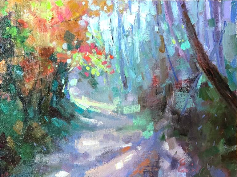 Landscape 100% original fine art, hand painted , one-of-a-kind creation by Emiliya Lane Size 12x9 Title "Mystery of Mist” Materials: oil paints, brush, palette knife, linen board Colorful, Impressionist landscape painting, would be a great addition to your original oil paintings collection. Or...