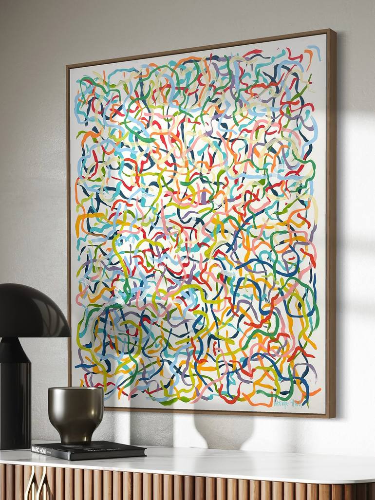 Acrylic Paint on canvas, shipped rolled in a tube. 'Mystic Current', acrylic paint on canvas is part of my collection “Free Abstracts”, a collection born from my deep connection to the natural world and my desire to create spaces filled with light and positivity. I draw inspiration from serene envi...