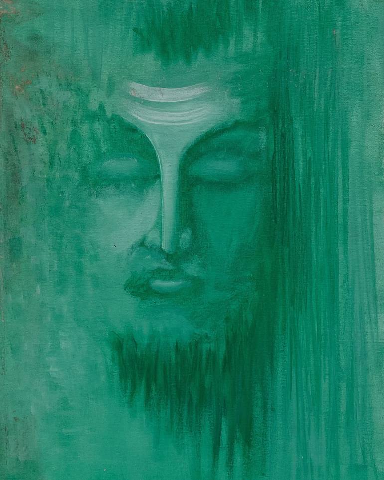 Welcome and thank you for viewing this unique piece of art. This portrait uses only one vibrant green color to capture the essence of Lord Shiva. The simplicity of the design draws attention to the three white stripes on his forehead, symbolizing spiritual wisdom. The abstract style, with its bold l...