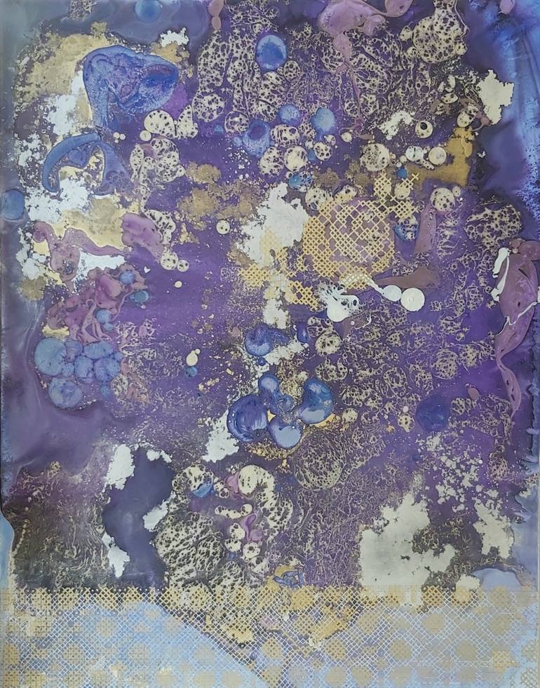 This cosmic and mystical canvas was created after my stay in an ashram in India. This unique work tells about my existential experience gained in the meditation space. The painting is made in liquid acrylic technique with high-quality acrylic paints. The painting is decorated in a gold plastic frame...