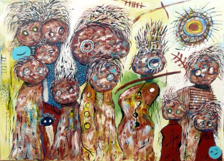 Art for me is a way to express myself, by giving me the liberty to make the invisible, visible, I know that sometimes a painting is difficult to interpret and understand and this process involves a fight, not with other people, but with oneself.. Now I live and work in Alicante´s Province on the Mediterranean coast where I have my studio. I´m mostly a self-taught artist and painting for me is a necessity, the best way to express myself creatively and explore fantasy. My art-style is naturally very childlike and does not follow any current trends. I love colour and its vibrant use to create something different. My work is spontaneous and with the tools of my art I like to recreate my peoples, my forests, my villages in my particular and unique style.