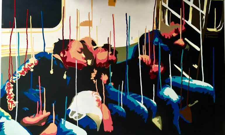 Trip to ny. A shot of a normal life, black guys traveling in the NY metro, maybe hours to get their station. I made a picture in my mind and I reproduce it with spray. Only spray art.