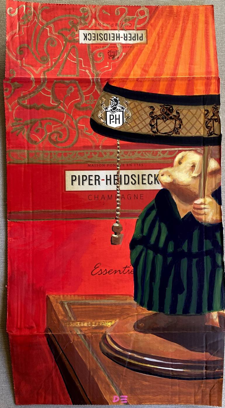 Art to make you smile - This is part of my series of paintings on real Champagne box tear outs. I love the idea of upcycling or "Up-ARTing" as I call it... Here it is a Piper Heidsieck Champagne Box side. My take on the lovely Night lIght in the French movie AMELIE.. Painting comes varnished and wit...