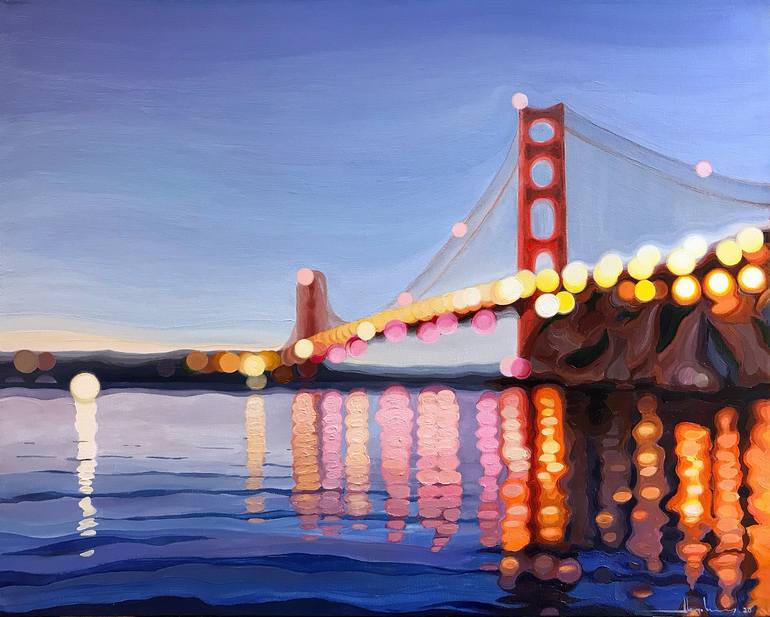 Alex Nizovsky – 'NOCTURNE #24 / Golden Gate Bridge, Sunset' (2019) Painting from 'Nocturnes' Series. Original Contemporary Art by Alex Nizovsky / Sausalito, California. Size: 24" x 30" x 1.5" (61 x 76 x 3.5 cm). Media: Acrylic on Canvas. Original Single-Piece Artwork. Directly from the Artist. ...