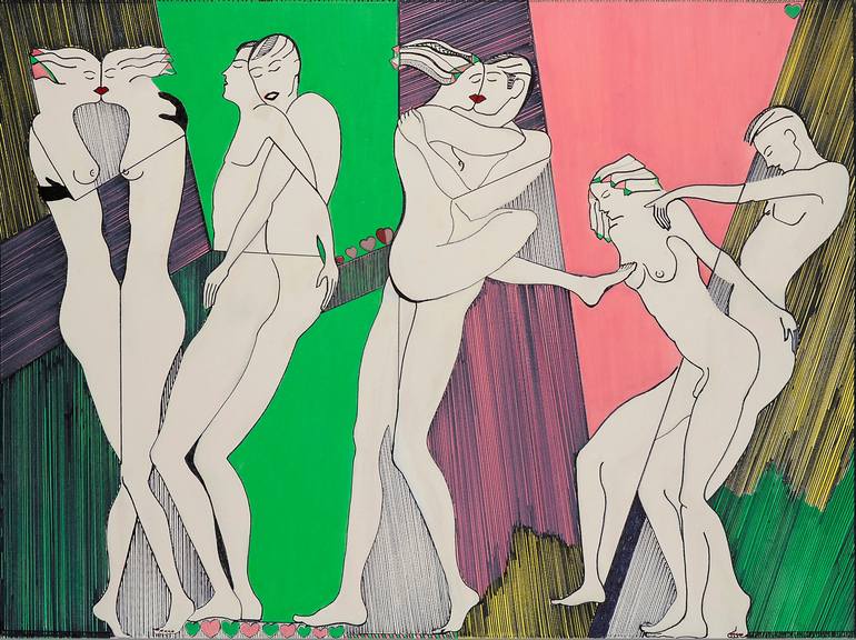 At "Synergy1973" organised by Glyn Hughes,who provided me with the canvas, I displayed my first painting,"Magic Moments" .Realising that as a painter to earn a living I had to conform, decided to go into the world of fashion (I studied Fashion design and Art at De Montfort Uni.) and paint when I was financially comfortable, so money would not dictate my Art.I operated a casual-wear co.using my own registered labels(Zapata,Rollers,Genesis) which I exported all over Europe. My base until 1999 was Cyprus.In 1999 I moved to Romania.In 2004 I sold my Fashion co. there ,returned to Cyprus and started creating a series of paintings. 1)Escape of the Gods,1973-2007(This work is presented in a book that I published in 2008) 2)Greek Tragedians and Comedians,2008-2015 3)Poetry meets Art,2016- 4)Small and spontaneous,2016- 5)Homo Erectus,2018- 6)Photo Art,2018- In my paintings I give my everything,I study the subject well and produce no more than ten works a year.