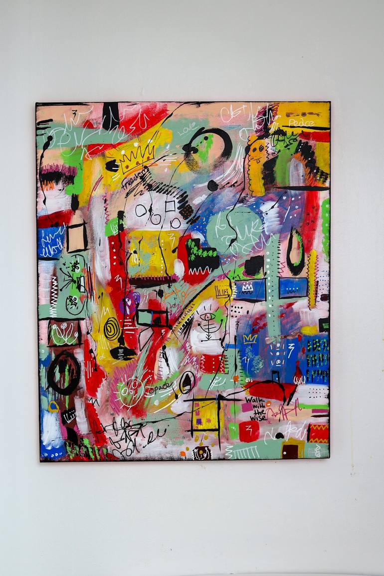 This original vibrant piece, harks to the refreshing wave of diverse street art cultures making its way into the arts. Using primary colours to highlight the innocence of play and fun, as well as express the contemporary side of this style of art.