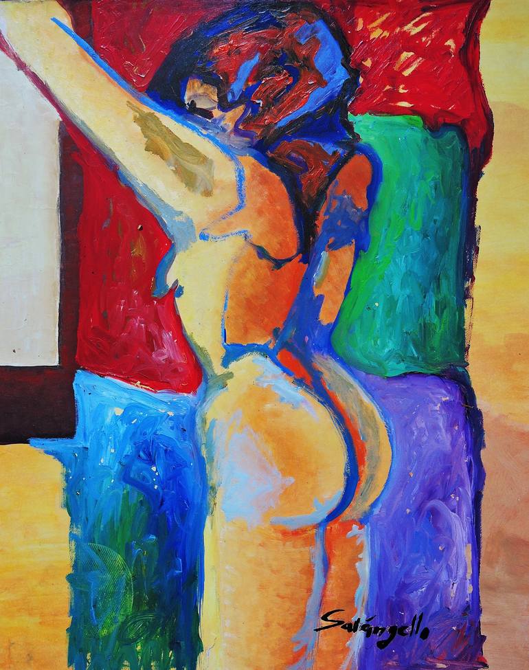 Painting oil on paper . Expressionism, nude, figurative, oil.