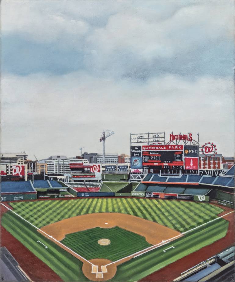 Nationals Park is part of my Baseball Stadium Series. Each painting commemorates the occasion of attending games at various MLB ballparks. This series connects to me to my maternal grandfather who played in the Montreal Independent Baseball League at Haymarket Square in Griffintown (Montreal) in t...