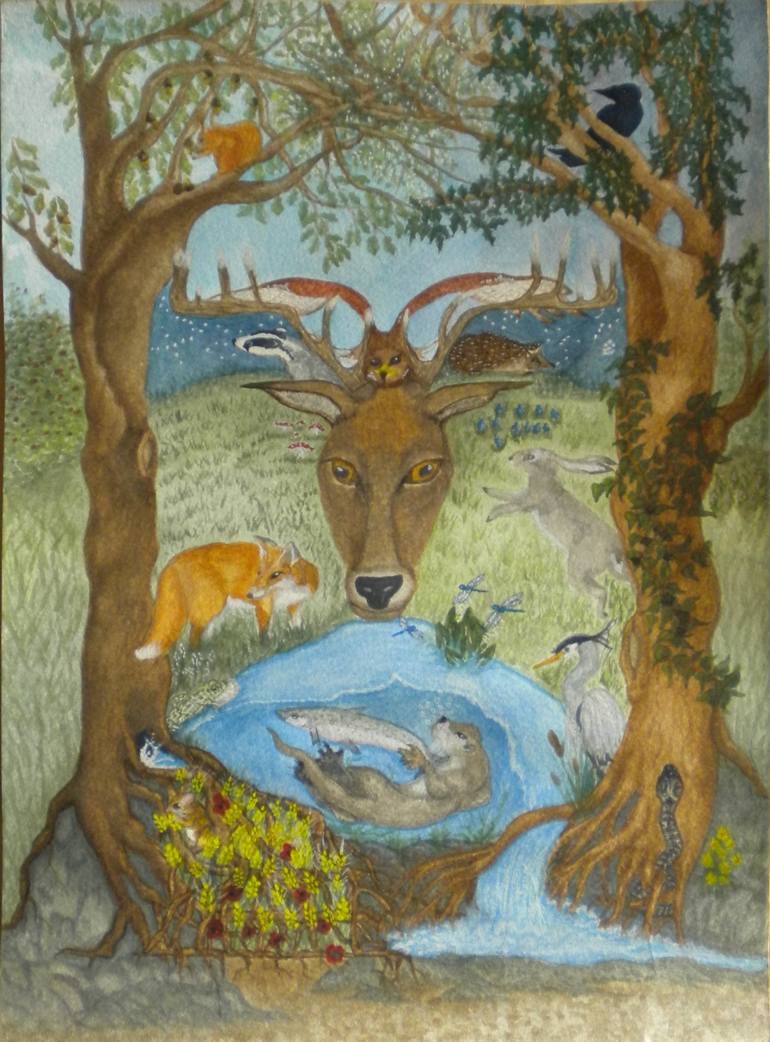 This piece was painted for an artist challenge. It contains some of the British wildlife that are under threat, such as the Badger and Otter. I wanted to paint a green man style picture but using the animals and trees to describe the features. I believe that the spirit of nature is in everything aro...