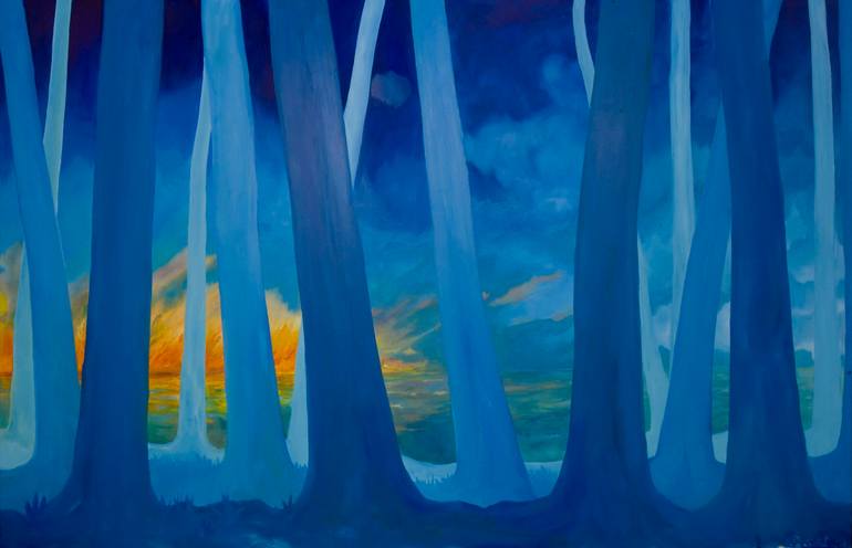 Biography Aymar was born in Bordeaux in 1973, although his family is originally from Reunion Island (Indian Ocean) on his father's side, and Normandy on his mothers'. He grew up between Normandy and Provence, in France, and moved to the USA at the age of 23, where he has stayed for over 12 years living in New York, Miami and San Francisco. Aymar has been painting for twenty years or so, but his interest started long before that. Deeply influenced by his grandmother, who painted colorful pieces based on Reunion's landscapes and whose house was always open to artists, other direct influences early in his life include Pierre-Paul Ambroselli, a Normand sculptor focused on sacred art who was his neighbor in Normandy, as well as Albert Mallet, Bernard Pochon and other Normand impressionist and expressionist painters. When he moved to Provence, he was influenced by Maxime Richaud as well, a Provencal painter and friend of the family. He followed his calling to study Plastic Arts in Aix en Provence, then Art History in Montpellier, where he discovered some of his favorites: Kandinsky (the Blue Riders), Fauvism, and Italian Futurism. Among the classics, he also admired the treatment of color and light of old masters such as Tiziano, Delacroix and Gericault. Once in the US, Aymar perfected his technique by working as a scenic artist and set designer for a number of years, and he also had an incursion of six years into the world of business and new technologies, while part timing as a commissioned artist for interior designers. It is in mid 2009 that he decided to focus completely on his own creations and become a full time artist. His latest paintings incorporate as well influences from Japanese artists, such as Ando Hiroshige and modern manga artist Hayao Miyazaki, from whom he admires the way they represent the relationship between the Spirit of Nature and humans. The Work Technique Aymar's latest series is developed around trees. In all the compositions he uses the tree trunks as the vertical lines that mark the rhythm, the tempo in the melody of the painting, while the horizontal lines frame the story, just the same way as bass and high notes frame the melody in house music. The bass (loud) vibrates through your feet from the floor while the high notes are higher above you, and the melody goes through you.