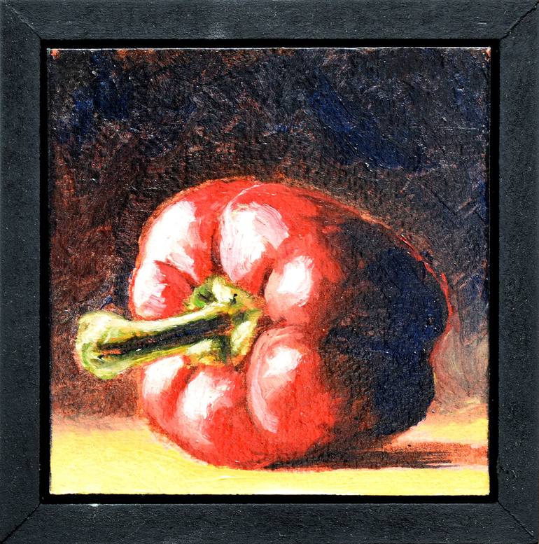 Peinture de nature morte à l'huile de la série "une peinture par jour". Encadrée dans une caisse américaine et signée au dos, prêt à être accrochée.