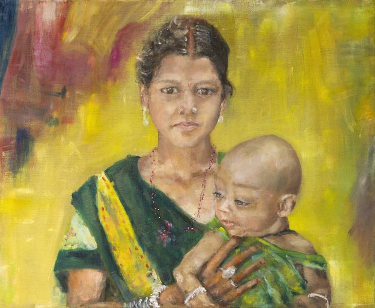 i met this girl with his son in India, Tamil Nadu, where i stayed as volunteer in the charity school of Pulluvapady. This is one of my first portraits i painted so it's particurarly meaningful to me.