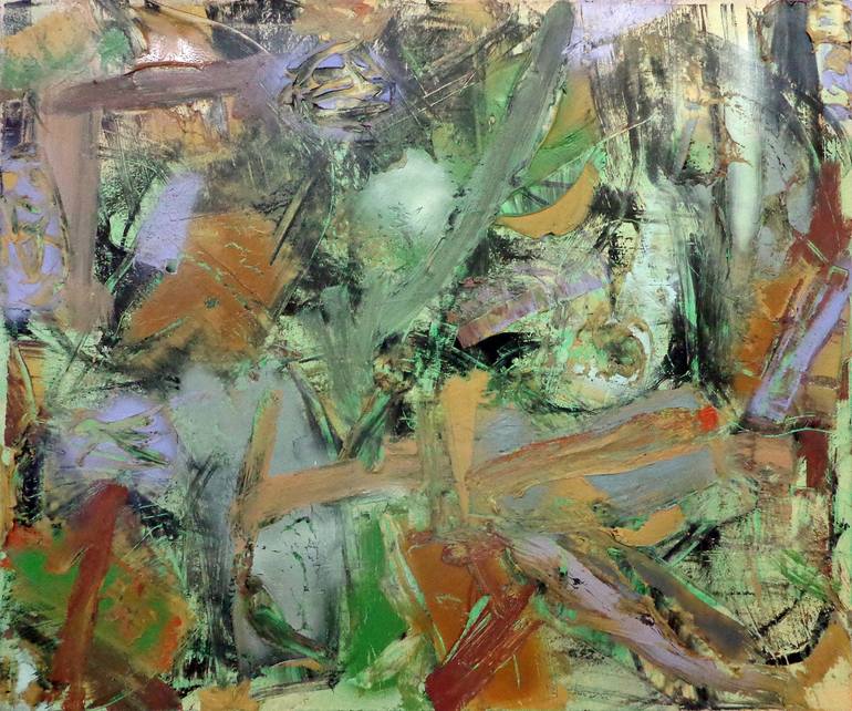 Gestural abstraction on stretched canvas. Ships in a crate with hardware included.