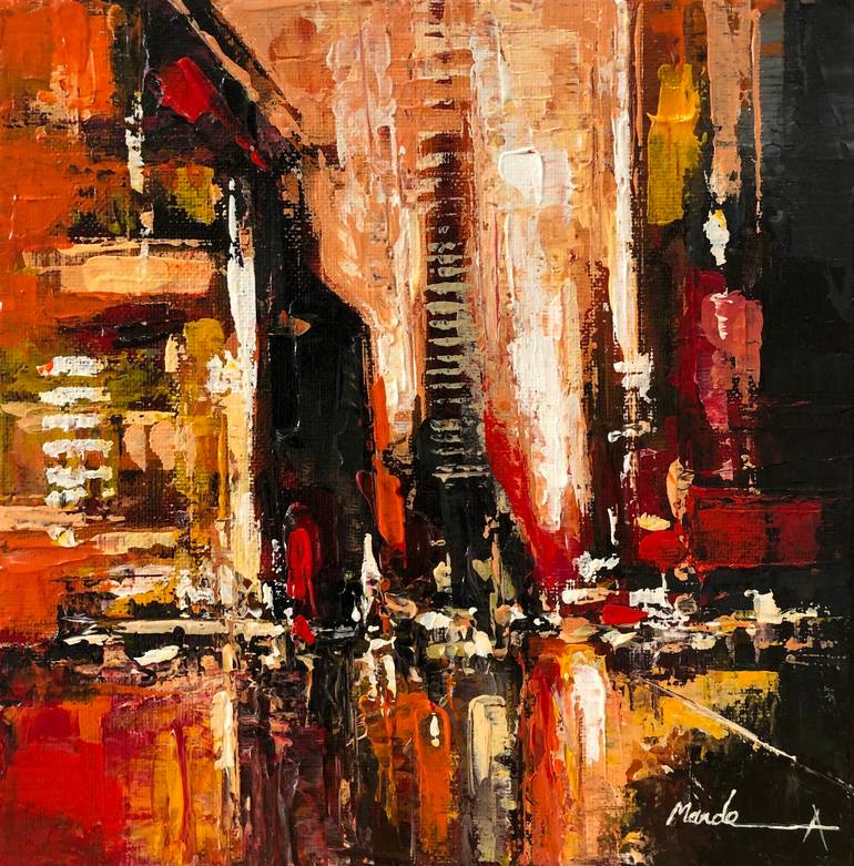 This is an original palette knife cityscape painting. All edges are painted. The artwork is stretched on a wooden canvas and shipped ready to hang. Acrylic on canvas. Size is 20 x 20 cm This artwork comes with a signed certificate of authenticity. © Copyright reserved.