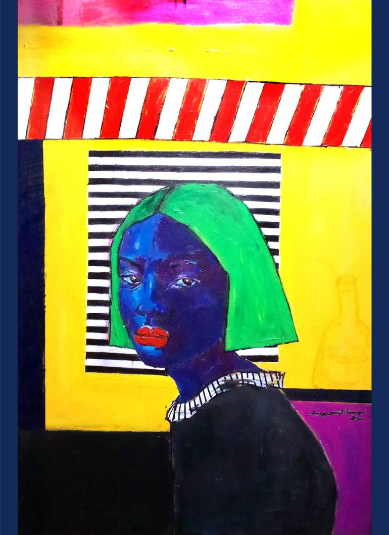 Omoyeni Arogunmati is an award-winning visual artist born in Nigeria, She is currently Blkarthouse Artist Advisory Board Member and also WO Foundation member. Her love for art began at a young age, this encouraged her to study Fine Art at the Polytechnic Of Ibadan, Nigeria. Omoyeni expresses her thoughts and feelings through a series of identical portraits painted in an impressionist style with varied degrees of abstraction. Her passions expose fundamental human feelings, exploits, and events, both exterior and intimate. She concentrates on the representation of human facial gestures through abstraction and simplification, making works that reference both impressionism and abstract art trends. The degree of abstraction changes only slightly from painting to painting, which has been a source of contention because it prevents visual conformity. Short and long brush and palette knife strokes filled with a mass dollop of oil or acrylic paint applied on canvas are featured in her work. This technique gives a layered impression and textured look. She uses only a few shades of color, paints a large area with one bright main color, and then emphasizes it with smaller highlights of other primary colors. Her whole palette is composed of black and raw color blends, with the white of her canvas serving as a contrast to the dark tones,One simple thing like the eyes and undefined nose and mouth with out pupils. Omoyeni's works follow the trends of Carlos Delgado's "Faces of the System" collection, displaying comparable expressions in various facial moods. They are the emotional expression of her inspiration and experiences. She has established projected work collections, which are represented by a number of art galleries both at home and abroad and can be found in private collections. She hopes that her work will bring light and relief to others, as she believes that art should be used to spread positivity in all forms.