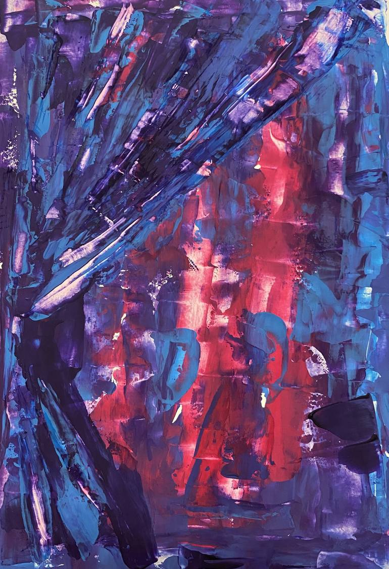"Neon window" Prints are available! "Neon window" is an original painting one of a kind. You can see black out dark blue curtains in the left part of the painting and a bright pink neon light coming from the window. Light pollution is a contemporary urban problem of big cities. The light disturbs y...