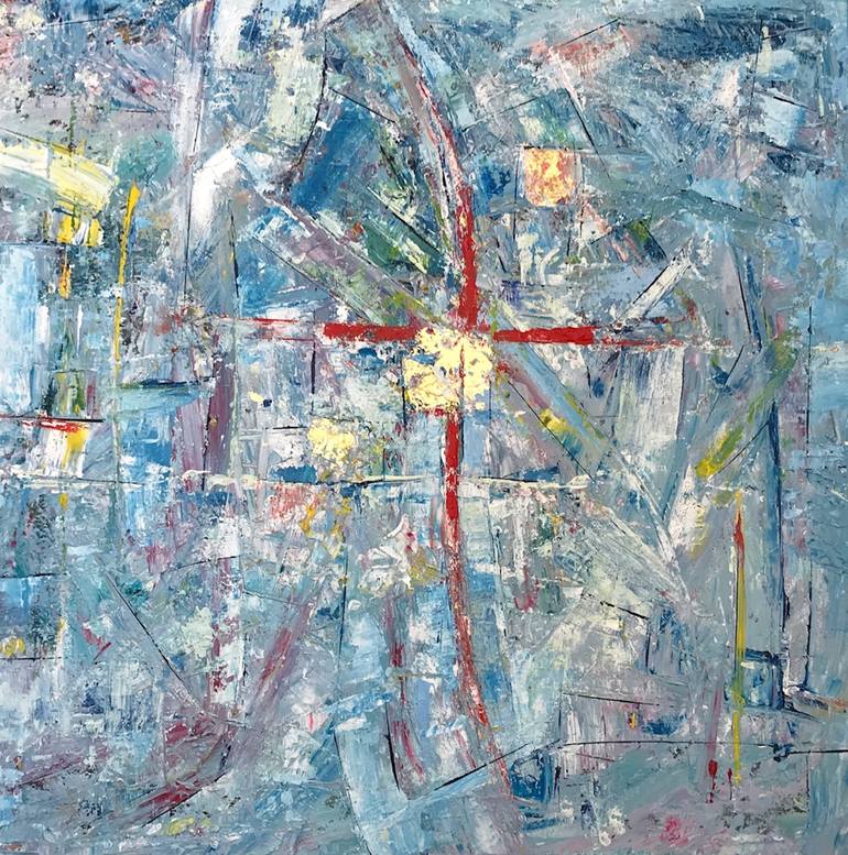 I created 'New Middle Ages' in 2015, using oil on canvas to create textures and depth, also adding beautiful gold leaf. The canvas comes framed as seen in the photos but can easily remove the frame if needed. Framed dimensions are 36x36", without frame 30x30".