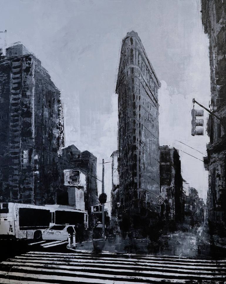 Title of artwork "New York, city scape composition #16" mixed media with spray paint Painted on canvas size 1000mm×803mm unique original Ready to hang