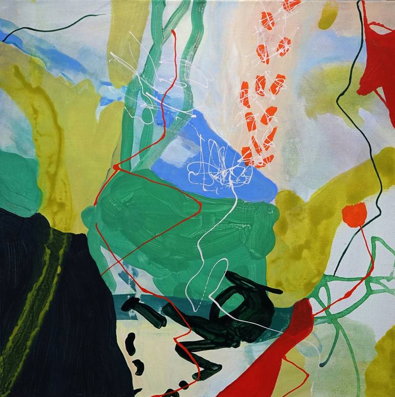 I love to experiment in my process of painting, exploring opposites like the spontaneous mark alongside the deliberate, dark colours contrasted with fluorescent pigments, masses of colour juxtaposed with fine ribbons or scribbles of paint. Compositions that offer no clear connection to reality but rather present explorations of painting compositions that may stimulate memories and create pathways to the imagination.