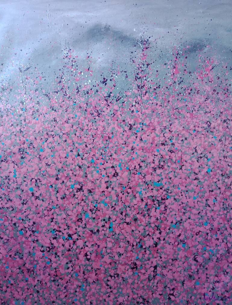 This is my painting original Acrylic on canvas, is it story in my life, when i wake up early in the Morning, i hope a star a new day Happy my job, my works, and happy with my family, i wan told them all the best for all, pink, Flowers, Moutian, grey, Acrylic Shipping in the tuber structure of the ...