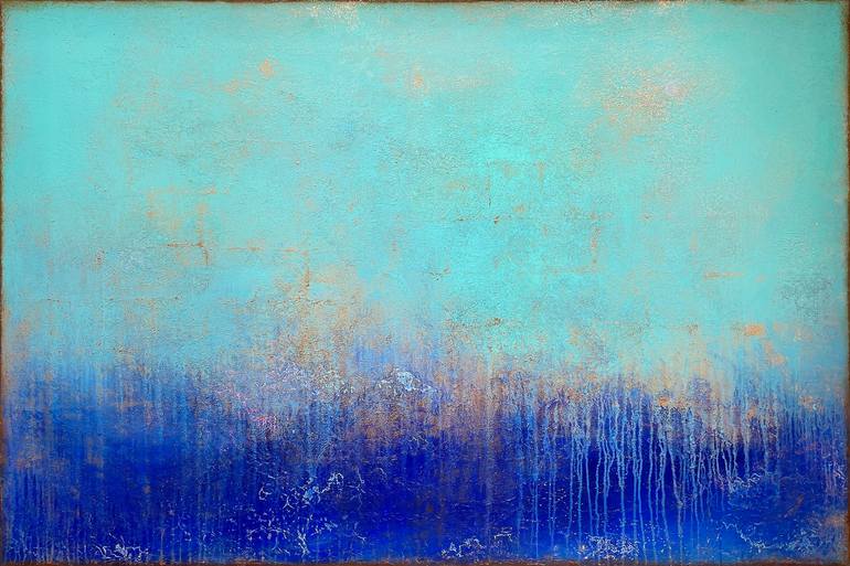 Original mixed media artwork on canvas, very modern, openminded and positive painting with fine structures, copper textures and dynamic color fields. I painted this piece in my wonderful studio in Santanyi, Majorca, inspired by the wonderful nature, the sea, blue sky and the vivid and joy of life. O...