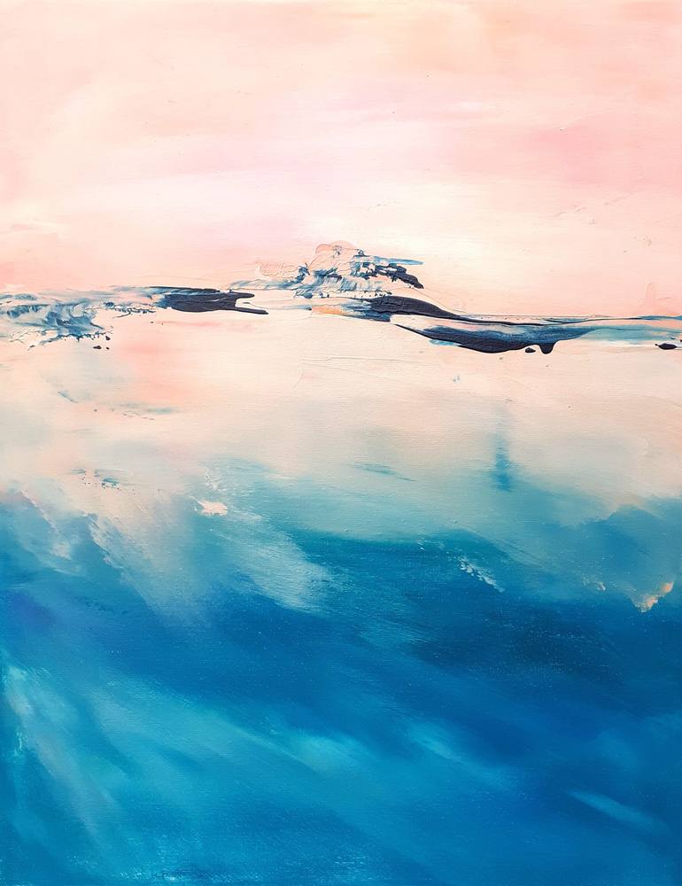 Series of seaside Nice morning by the Sea....original painting, acrylic on canvas, contemporary art painted by palette knife, have gloss varnish to protected painting, unframed, size is 40.0 cm x 50.0 cm x 2.0 cm