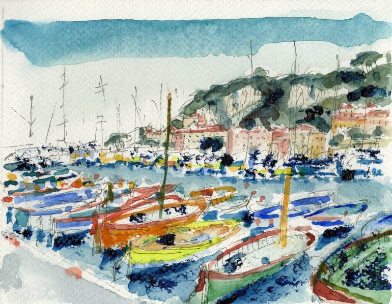 Nice in septembre, what a wonderful feeling. Coming from Finland, here you have still this ambiance of the mediterranean summer, this special light, this atmosphere, and you have to catch this moment with pencil and layers of watercolor in your sketchbook.