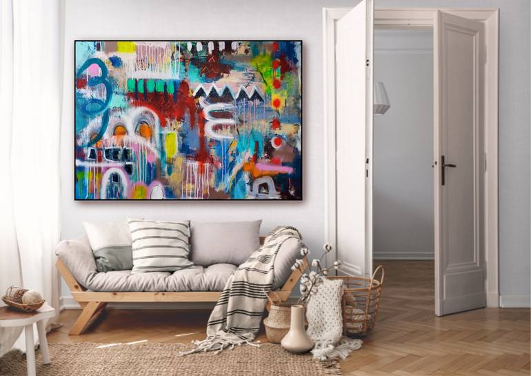 Night Jazz” is a large-scale contemporary abstract painting inspired by urban rhythm, improvisation and nocturnal energy. Dynamic brushstrokes, layered acrylic textures and spontaneous symbols create a visual equivalent of jazz — free, expressive and emotionally charged. Painted in acrylic on canvas...