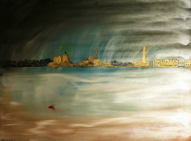 Painting produced by Ted Stourton in 2016. This painting truly captures magic and startling effect that night light enhances over Venice. Presently exhibited at Camelot Castle in Irina's Restaurant. Can be admired daily by visitors to Camelot Castle in Tintagel, England.