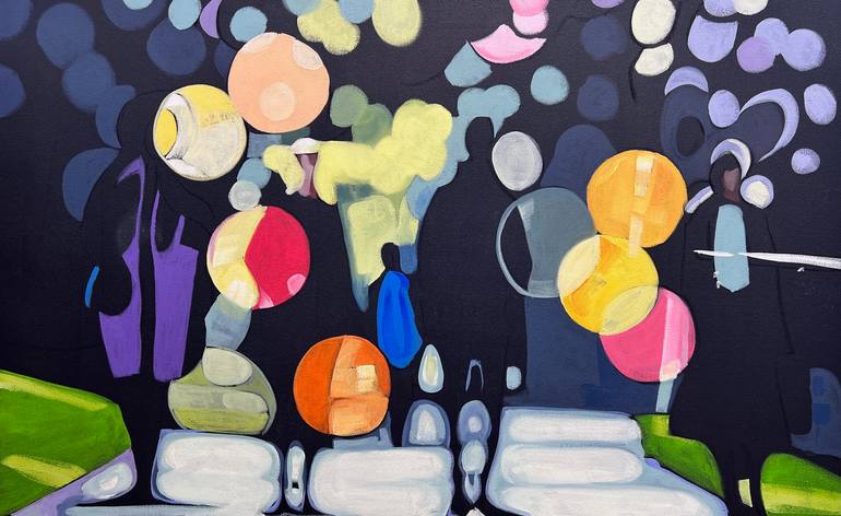 Inspired by Bokeh from the Japanese word Boke which means blur or haze. A photographic effect translated into paint. I use it as a way of abstracting the figures in my paintings.