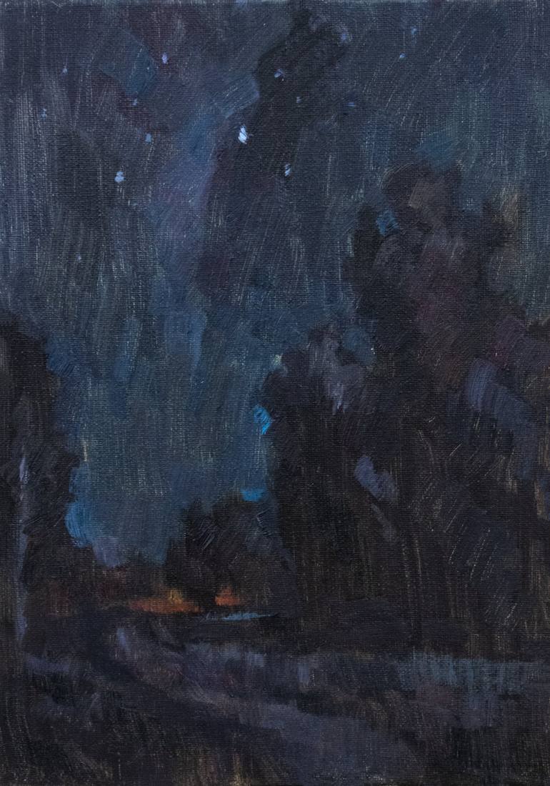 The artwork shows a view of a sleeping area in the city of Riga. A path among the trees, far from city lights, and a huge starry sky above us. For a city man, seeing the stars is a miracle. The modern city is hiding more and more from the darkness of the night behind the armor of illumination. But t...