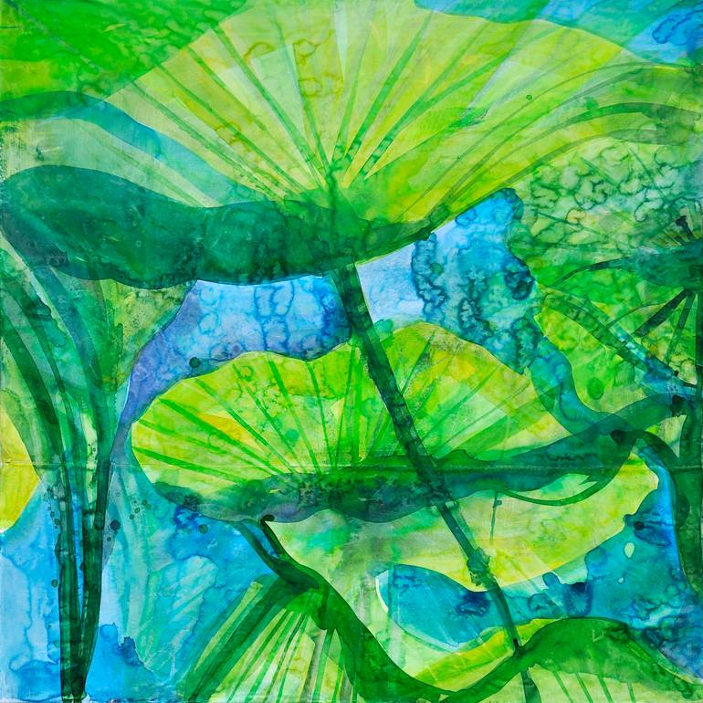 I love to represent nature, I represent what I see during my travels. In this case I was attracted by the green color and the light that passed through the water lilies grown in a lake in Provence. The calm, the sound of the water and the animals around me kidnapped me in this moment of inner peace....