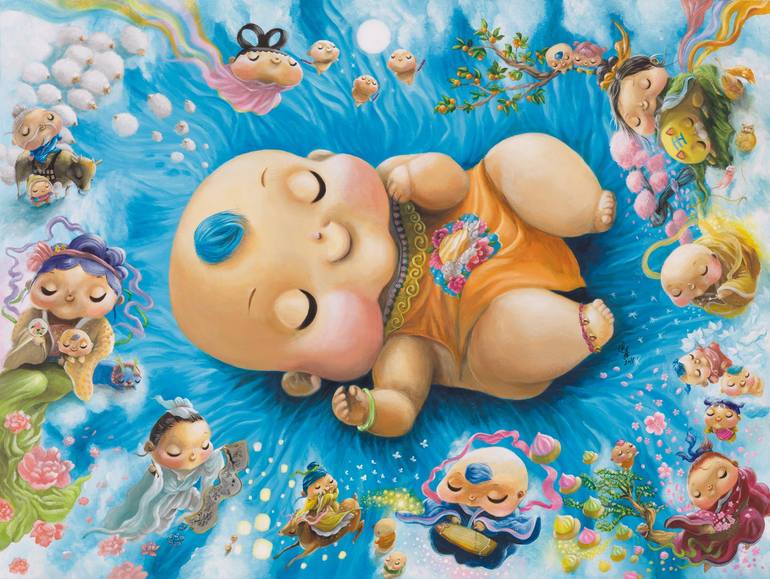 ikka Ng began his artistic career in 2006. He is known for the “So Ha” Art, demonstrating different aspects of traditional Chinese culture with loveable baby characters. Tikka’s creativity has taken a deep root in China’s traditional culture; he has incorporated strong Chinese traits in his artistic expression. Fusing the distinct Chinese characteristics with Western elements and Japanese superflat technique, Tikka ultimately creates his own narrative and recognizable style. In the recent body of work, Tikka investigates the traditional Chinese value of death and life.