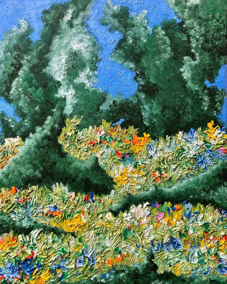 Basically landscapes and florals when its warm and figures when its cold and nothing grows...and/or somewhere in between... Looking back at a 30+ year bouillabaisse of creative adventure (and misadventure) the single most important lesson I can convey is to be original, paint for the soul and love what you do because the rest is just chaos theory disguised as a business. I'm basically a process guy, so I live for manic, adrenaline infused studio marathons filled with experimentation, fear, faith and literally tons of profanity; Constantly drunk with creative lust or hungover from bad ideas (that later turned out to be good) and all of it in steady chase of my truest self. The work itself opines the space between real and abstract and is anchored into the physical world using both nature and figure as muse. These genres are then bonded into a cohesive body through color. Being partially color blind, I use color more as a weapon of indelicacy where subtlety is tested, even strained, while still achieving a cosmopolitan of sublime. My works have been placed within corporate and private collections throughout the US, Europe, Asia and the Middle East.