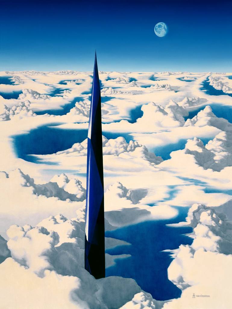This painting is about human achievement and progress. It is a sunlit setting high above the clouds. The canvas is a quality Belgian linen. Hanging hardware is included.