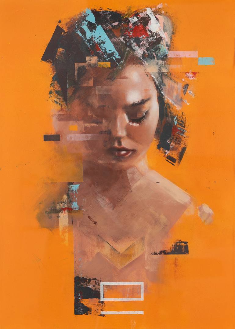 No surrender - orange Taken from my new exclusive portrait cycle NO SURRENDER. Acrylic, painted on paper, framed.